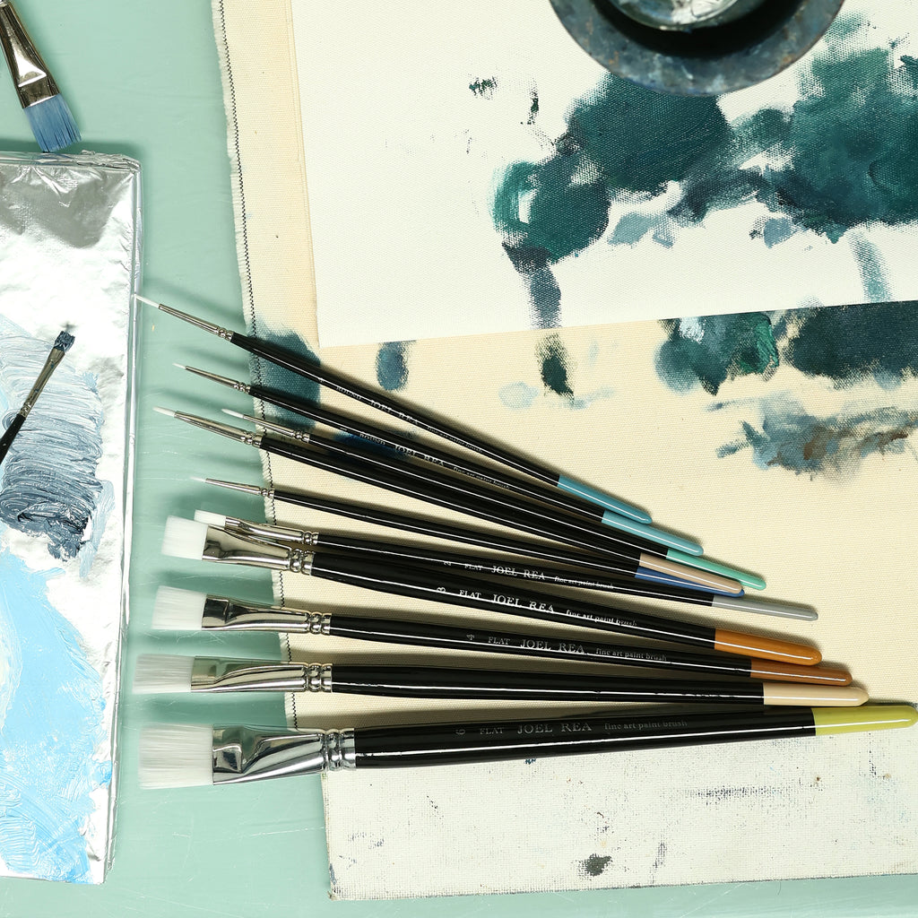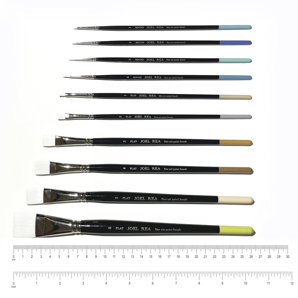 6 flat sizes and 4 round sizes feature in this brush set used exclusively by Joel Rea for his fine art studio work.